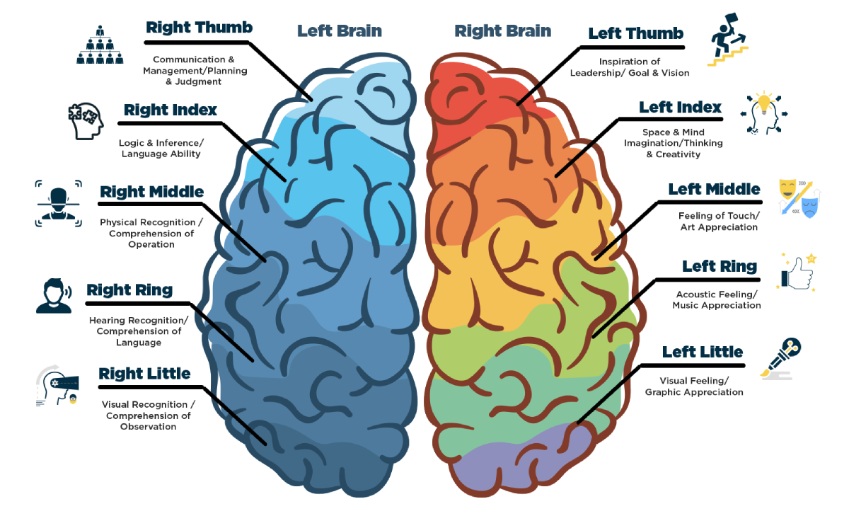 DMIT (Dermatoglyphics Multiple Intelligence Test) is a revolutionary psychometric tool that helps you understand the blueprint of your mind. Based on fingerprint analysis, fingerprints are the reflection of brain lobe development. They reveal your personality type, strengths, weaknesses, multiple intelligences, IQ, best learning methods, ideal career choices, and even suitable hobbies—all in just one test. Each brain lobe is assigned a particular function; the higher the neuron connectivity in a particular brain lobe, the higher the interest in the function of the lobe.