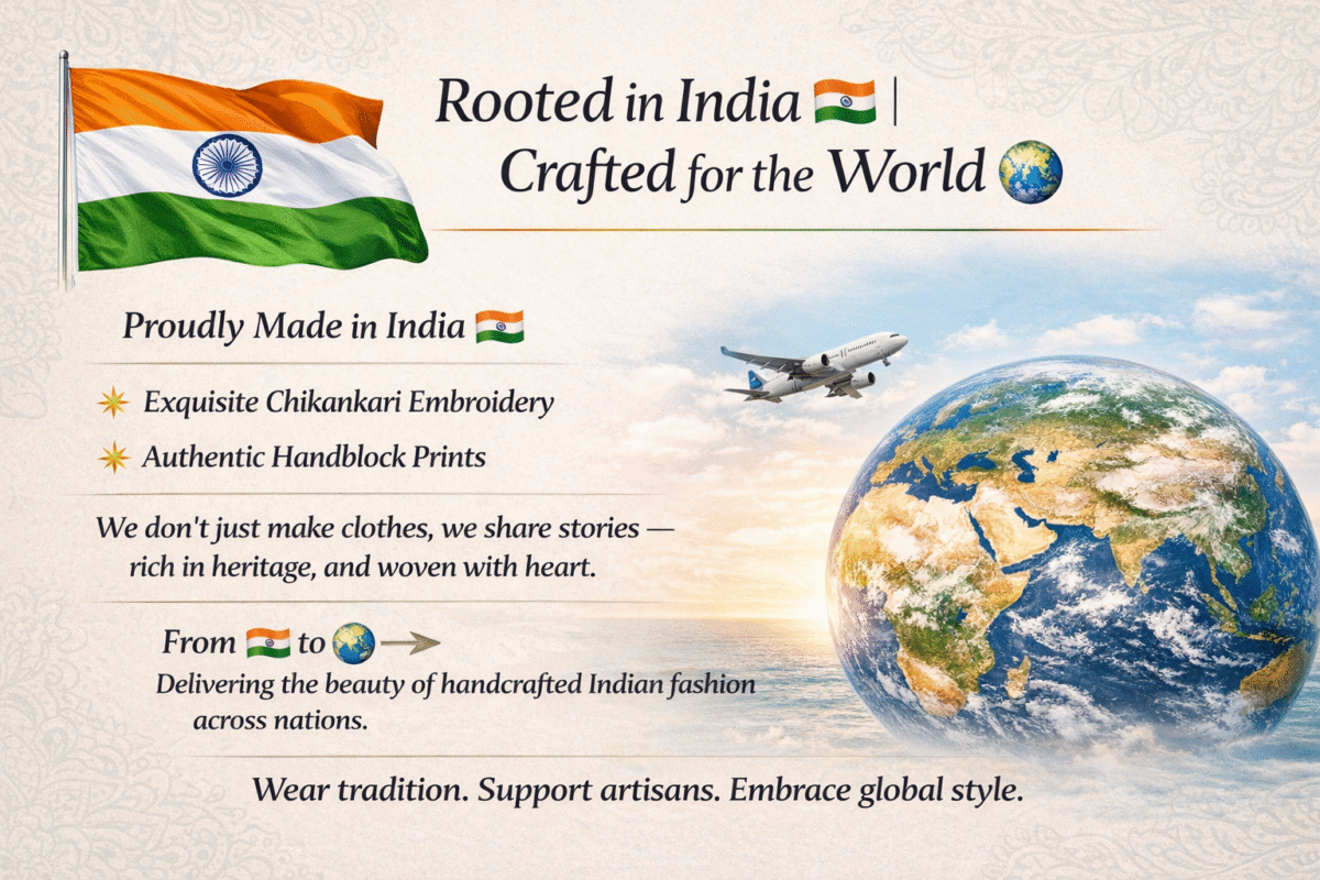 Delivering the beauty of handcrafted Indian fashion across nations.