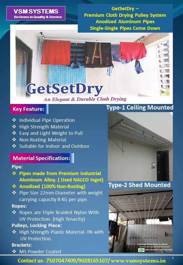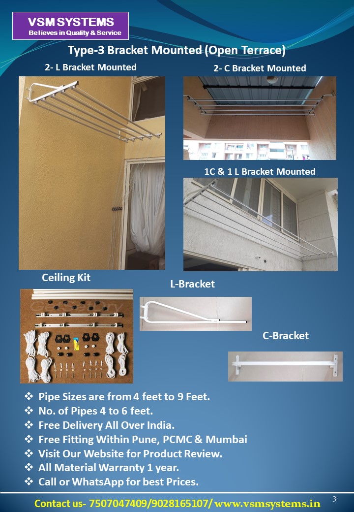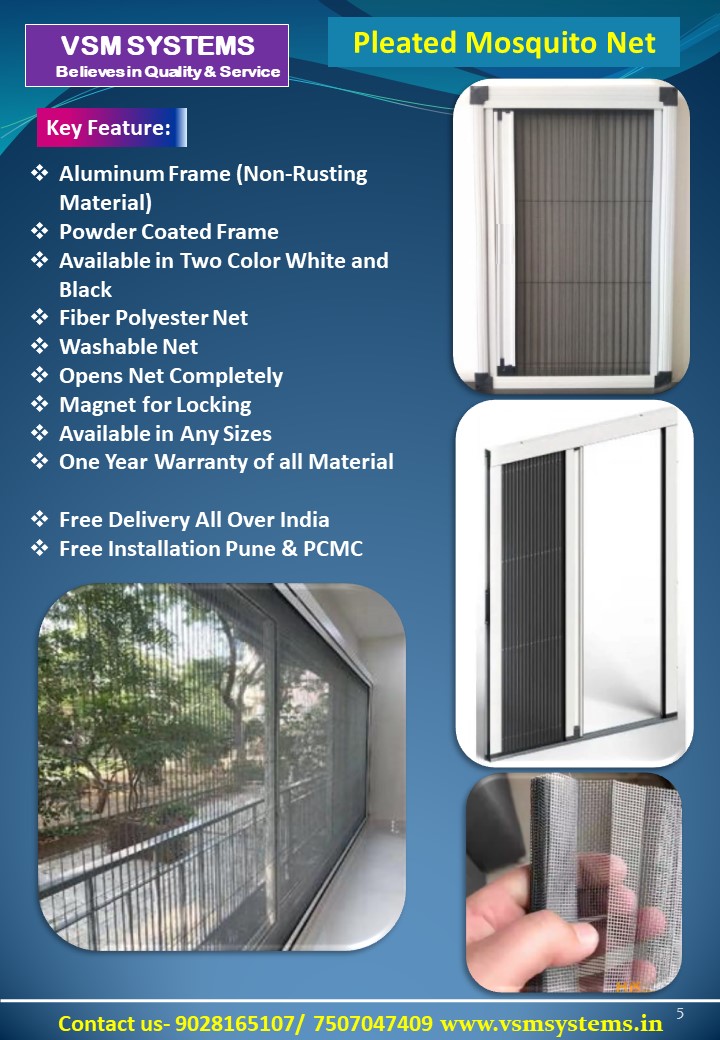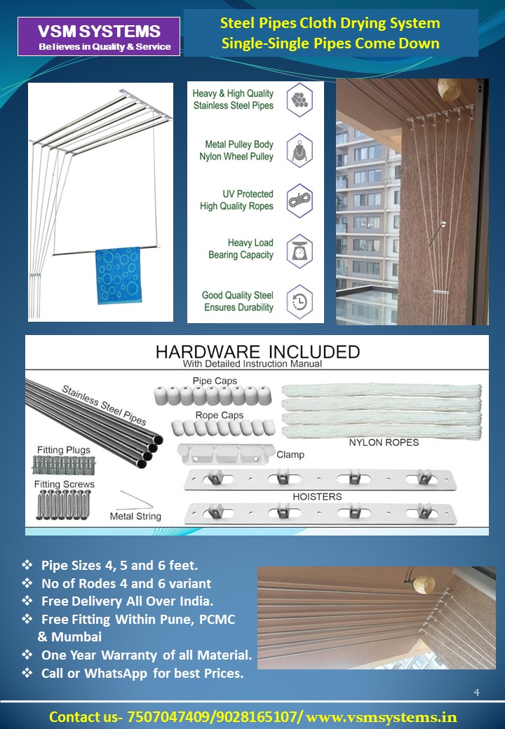We are the best seller of customised Cloth Drying System and Pleated Mosquito Net in Pune. We belives in best cost Quality and Service. we have installed 10,000 units so far in 7 years and have vast experience in Manufactring the Products.
